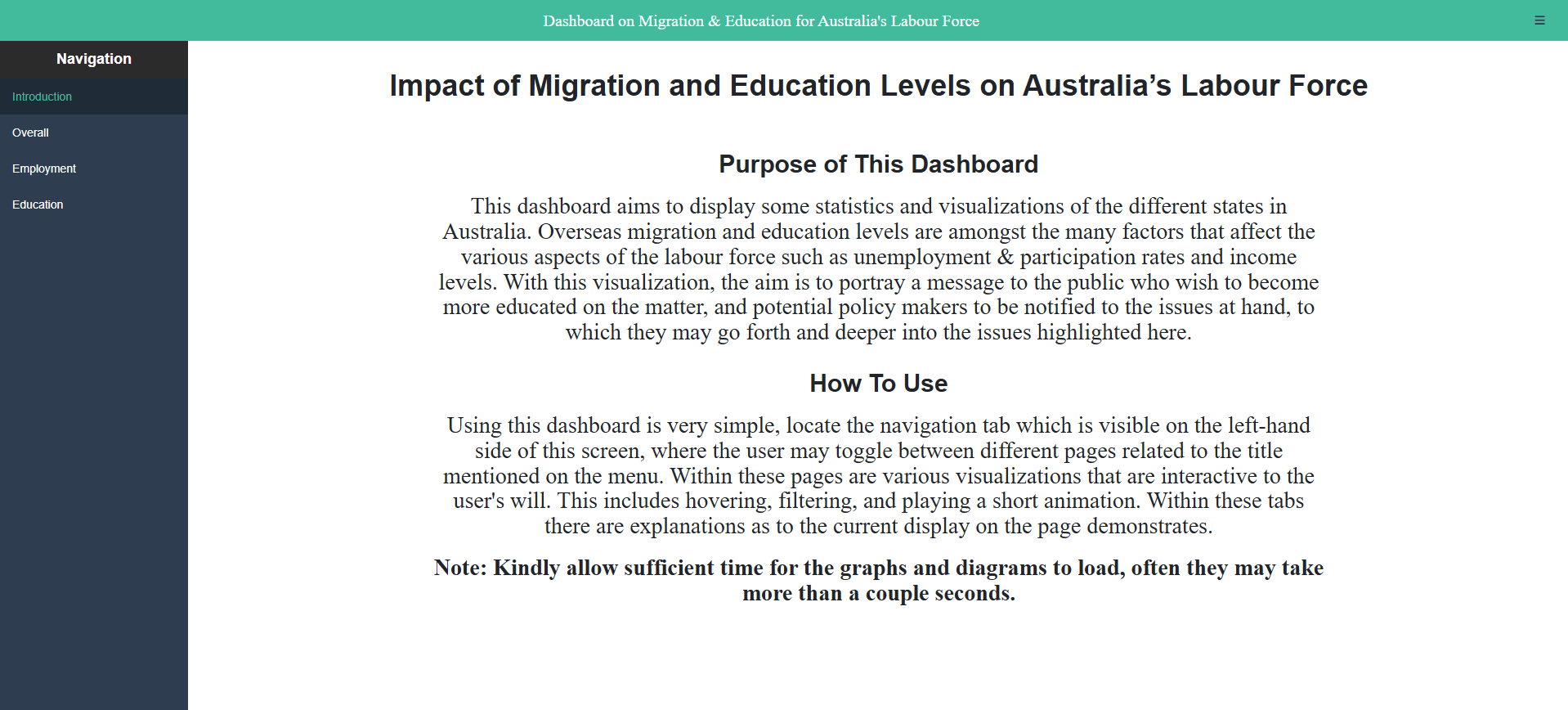 The motivation behind creating this dashboard stems from a desire to provide a comprehensive, data driven analysis of the labor force dynamics within Australia. Understanding the labor market is essential for policymakers, businesses, and individuals alike to make informed decisions. This dashboard was developed to bridge the gap between complex datasets and meaningful insights by presenting key factors in an accessible and interactive way.